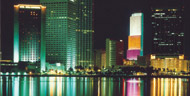 One of the iconic features of Miami Tower is its exterior lights, which change colors.